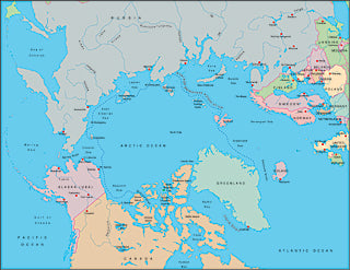 Illustrator EPS map of Arctic Ocean centered on 90 West
